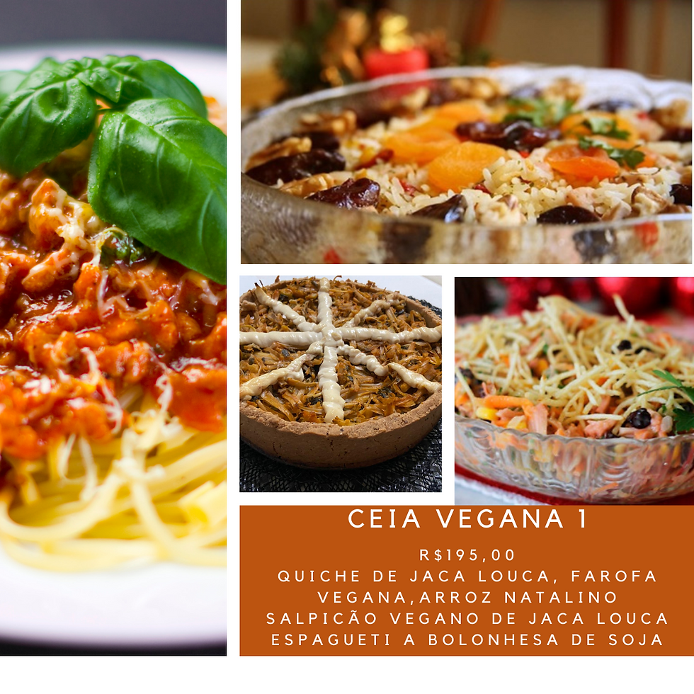 Opcão de ceia vegana para você e sua família. Você ajuda os projetos da fundacao, ajuda a causa animal, tem uma ceia saudável, sem produtos de origem animal (portanto sem colesterol), sem lactose